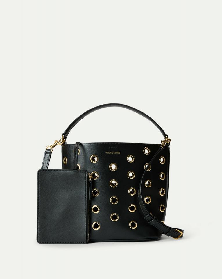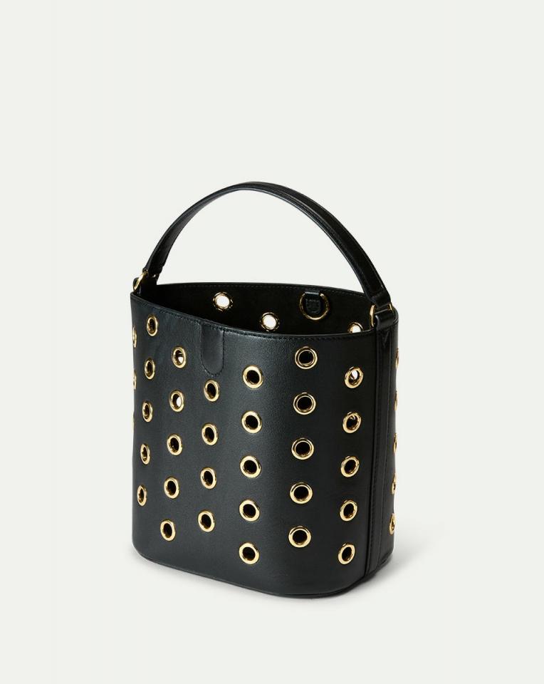 Defined by a clean, understated design, the Feedbag is an everyday hero. Crafted from supple leather with allover gold grommets, this compact style is finished with both a structured top handle and a removable shoulder strap for maximum versatility. An interior zip pocket and V-shaped hook-and-eye closure ensure convenience and ease.LeatherLining: Microsuede8” L x 6” W x 8” HHandle drop: 4”; strap drop: 20”Store in a cool, dry place and wipe any surface dirt with a dry clothStyle #H2411HL101Y072