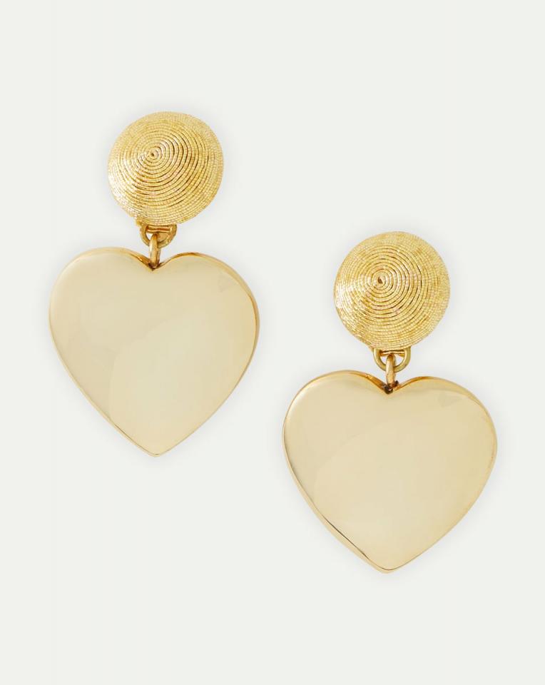 Jewelry by Rebecca De Ravenel is a testament to free-spirited elegance and the duality between island life and city living. Each piece is carefully handcrafted in Brooklyn, and tells a unique story shaped by designer Rebecca’s travels and love of art, color, history and culture.Length 2″Lurex cord wrapping with gold electroplated carved wood hearGold plated hardware back