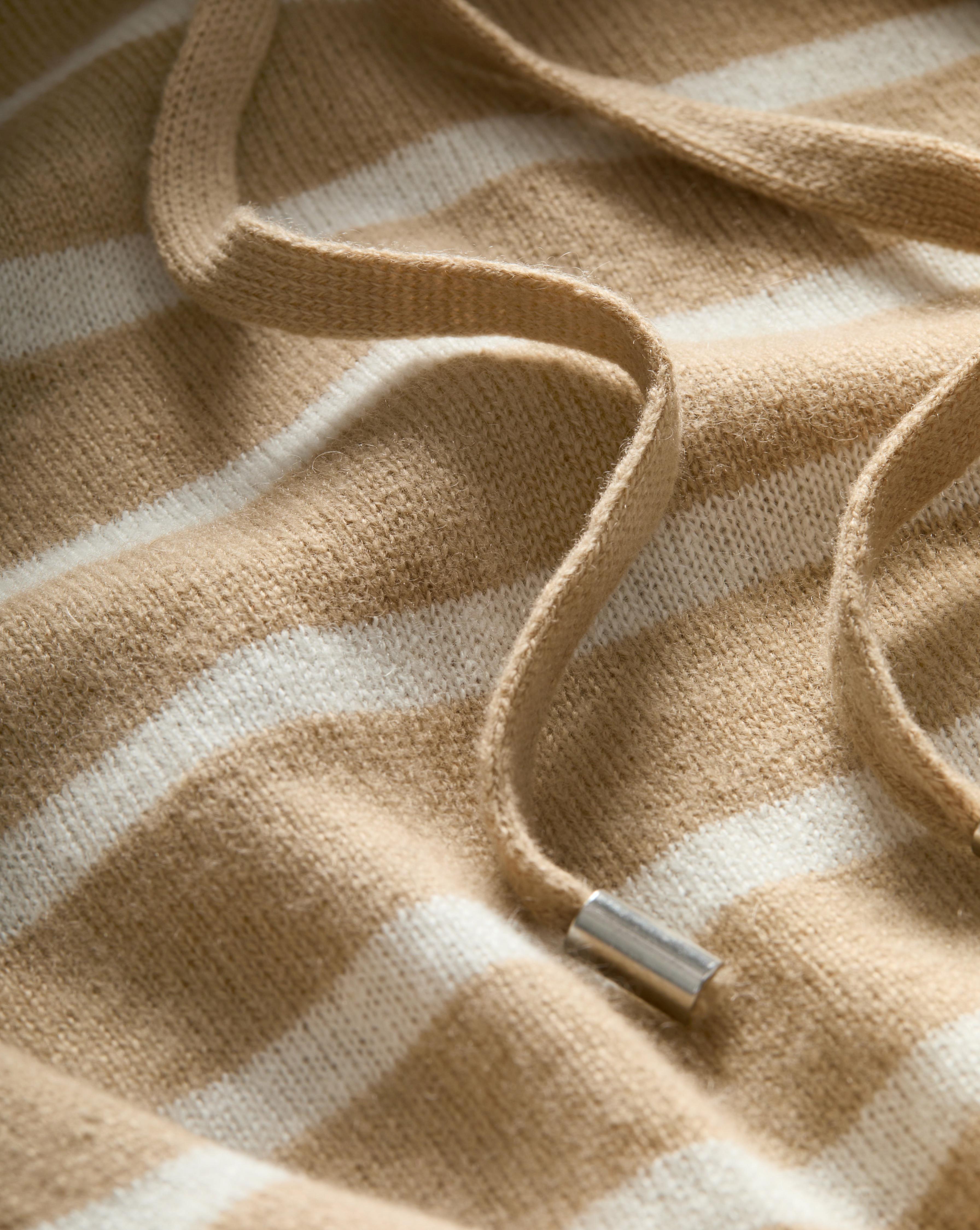 An essential, elevated. Spun from 100% cashmere, the Adrian hoodie boasts a relaxed fit, horizontal tan & white stripes and ribbed details. Endlessly versatile, it’s great with jeans, pants, skirts, you name it.100% CashmereDry Clean OnlyStyle #2502KA1290569