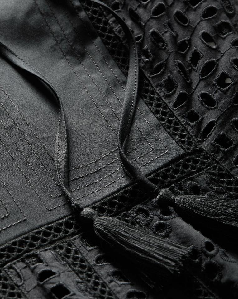 Expertly tailored from lightweight cotton, the black Alina sleeveless dress is defined by an elegant, sweeping maxi silhouette and a charming allover eyelet design. A split-v neck with tassels complete the look. Sophisticated yet effortless—this is how you do best-dressed guest for balmy summer days. Style with chic flats or strappy slingbacks.100% CottonLining: 100% CottonDry clean onlyStyle #2504EM7821654