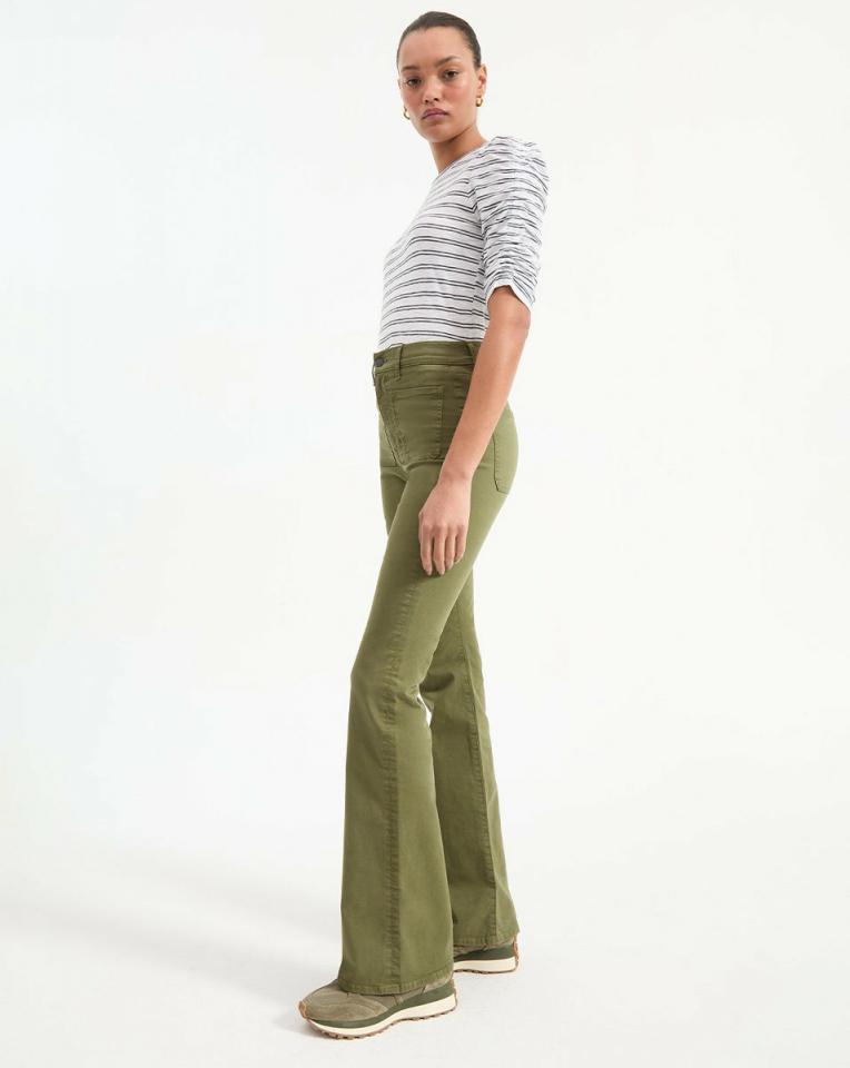 The Beverly you know and love—now with front patch pockets. Everything else you love about the style remains the same, from the high-rise waist that’s fitted through the hips and thighs to the subtly flared leg. Made in LA from super-stretch Japanese twill, this VB best-seller in army green is a year-round must-have.97% Cotton, 3% SpandexMade in USA from premium Japanese denimTurn inside out and machine wash cold. Hang to dry.Style #J25024920644AY