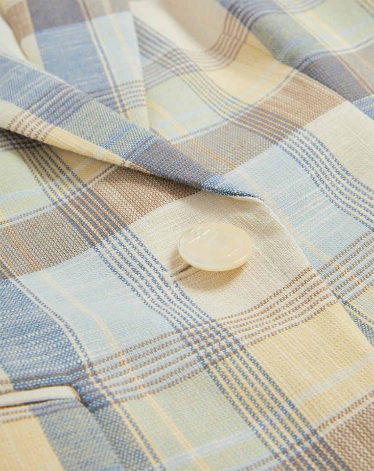 Expertly tailored from an Italian stretch cotton, the Clayton dickey jacket is a single-breasted blazer with an elongated, straight fit and a summer-ready plaid in pale blue, cream, and yellow. Flap pockets and a back vent complete the look. Pair this plaid blazer with off-white jeans or shorts for weekends and wanderlust—or wear with the coordinating Allen short for a chic summer set. Switch it up with a dickey for even more styling options.88% Cotton, 11% Polyester, 1% ElastaneLining: 95% Polyester, 5% Spandex TaffetaFabric country of origin: ItalyDry clean only, with buttons coveredStyle #2505PL7811308